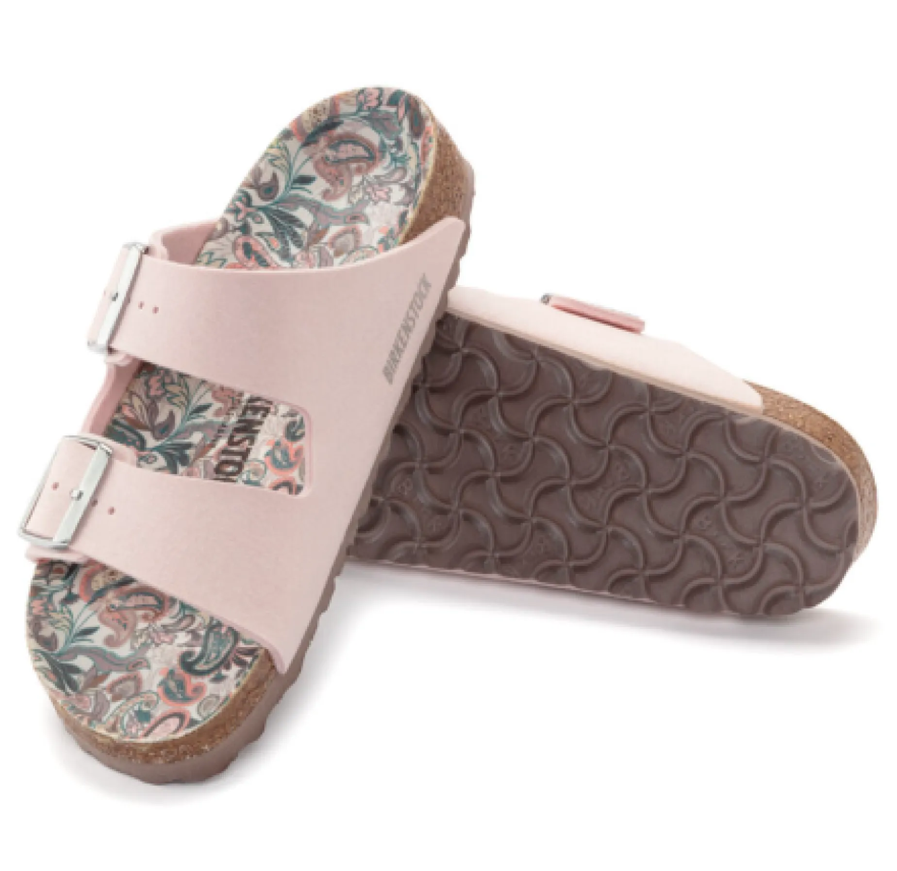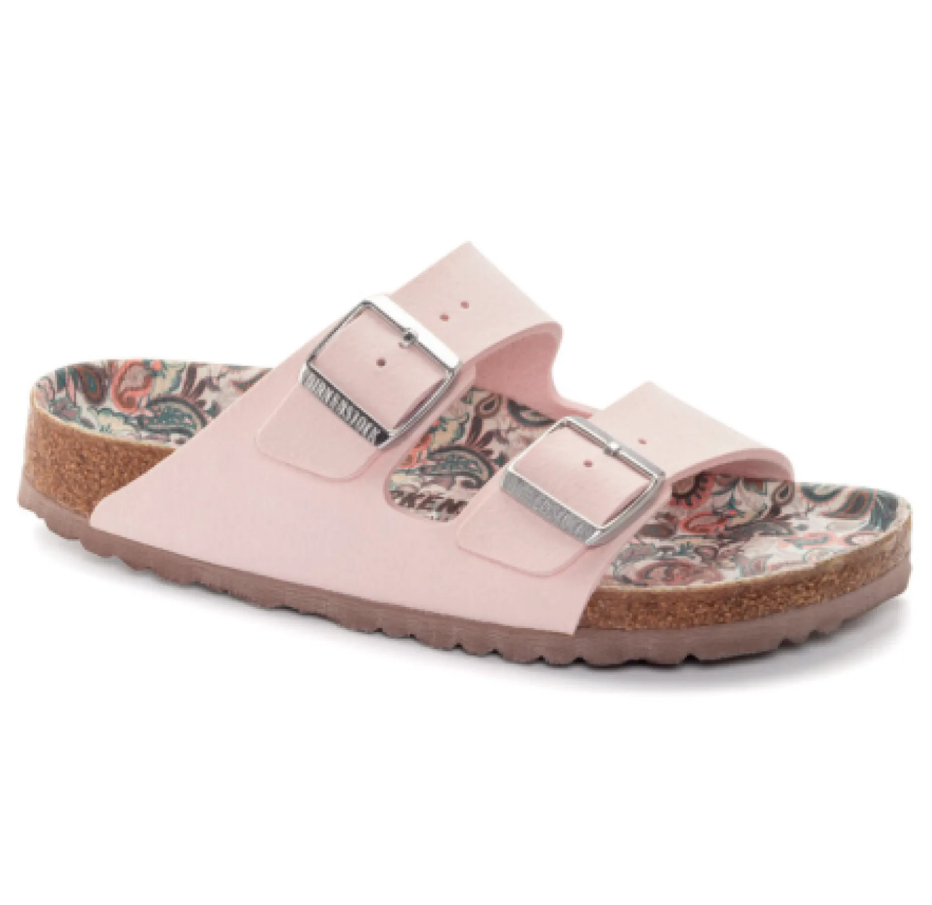 The BIRKENSTOCK Arizona is a genuine classic that has been delighting both men and women with its timeless design for decades. This version features a creative paisley print on the footbed. This popular sandal has been given an update in a new material, with a vegan version now available. It is entirely free of animal products, as verified by independent testing laboratories. The upper is made from a skin-friendly synthetic material with a velvety feel.