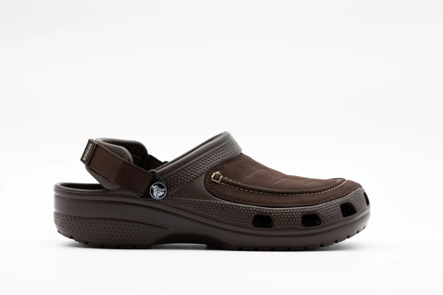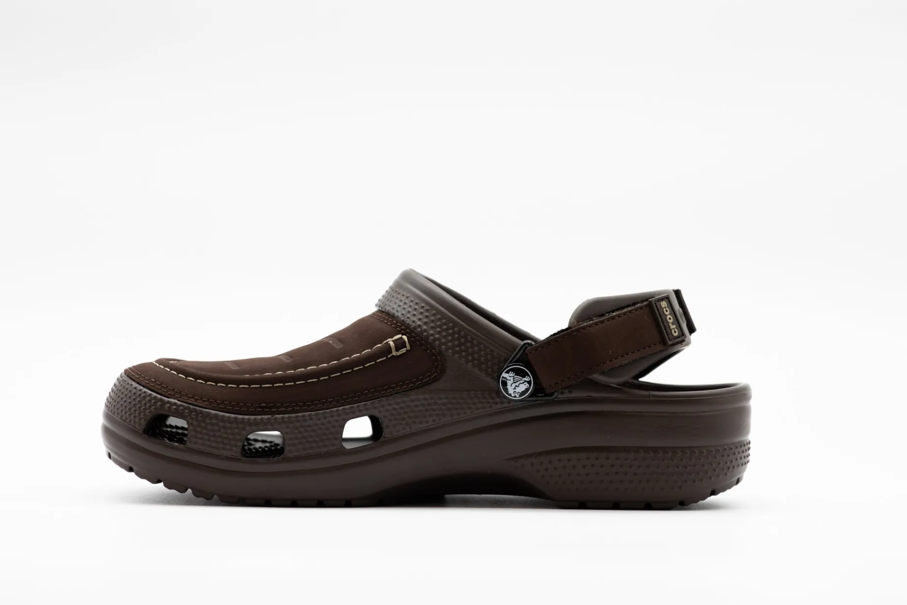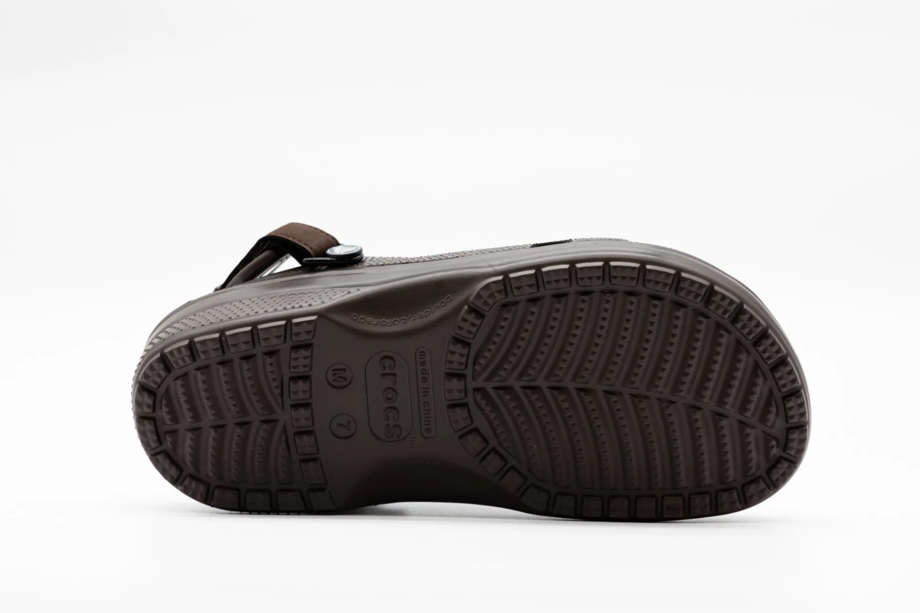 Crocs men’s slippers are perfect for everyday use. Made of durable Croslite ™ resin material that adapts to the shape of the feet. The top layer is covered with natural leather. Adjustable strap with Velcro closure on both sides. Sole with an adhesive tread.