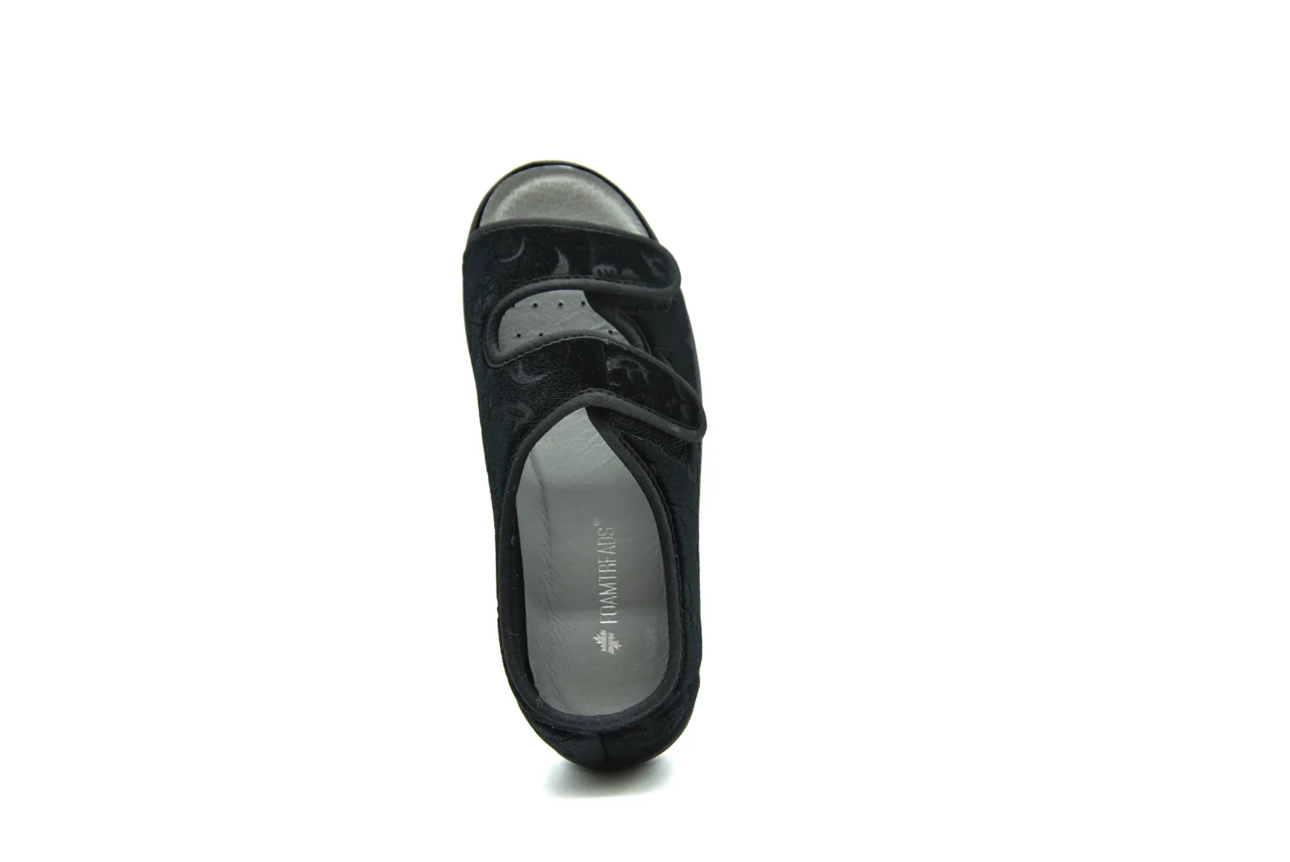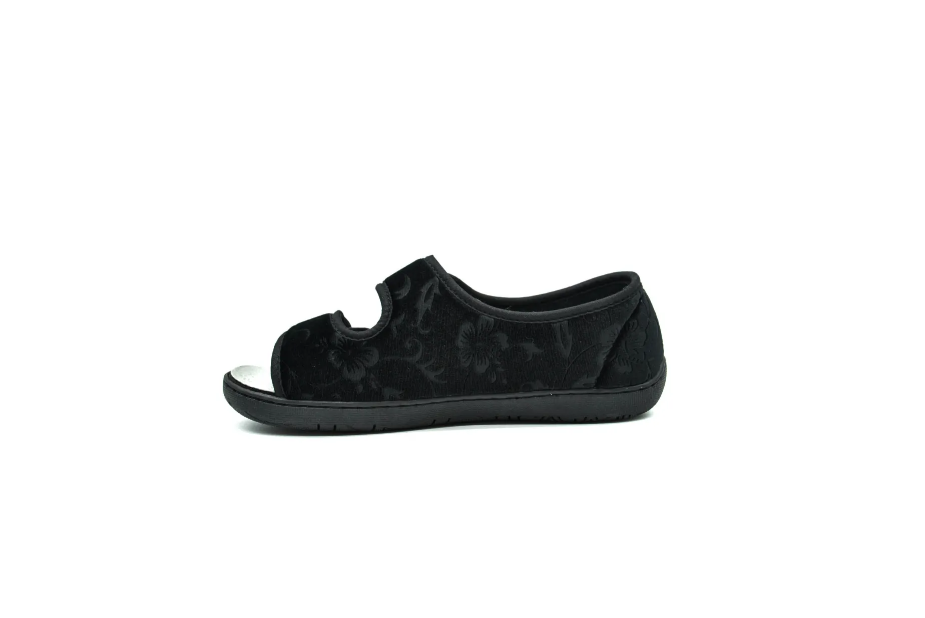 Features: Open toe, dual adjustable hook & loop straps & removable leather insole with memory foam