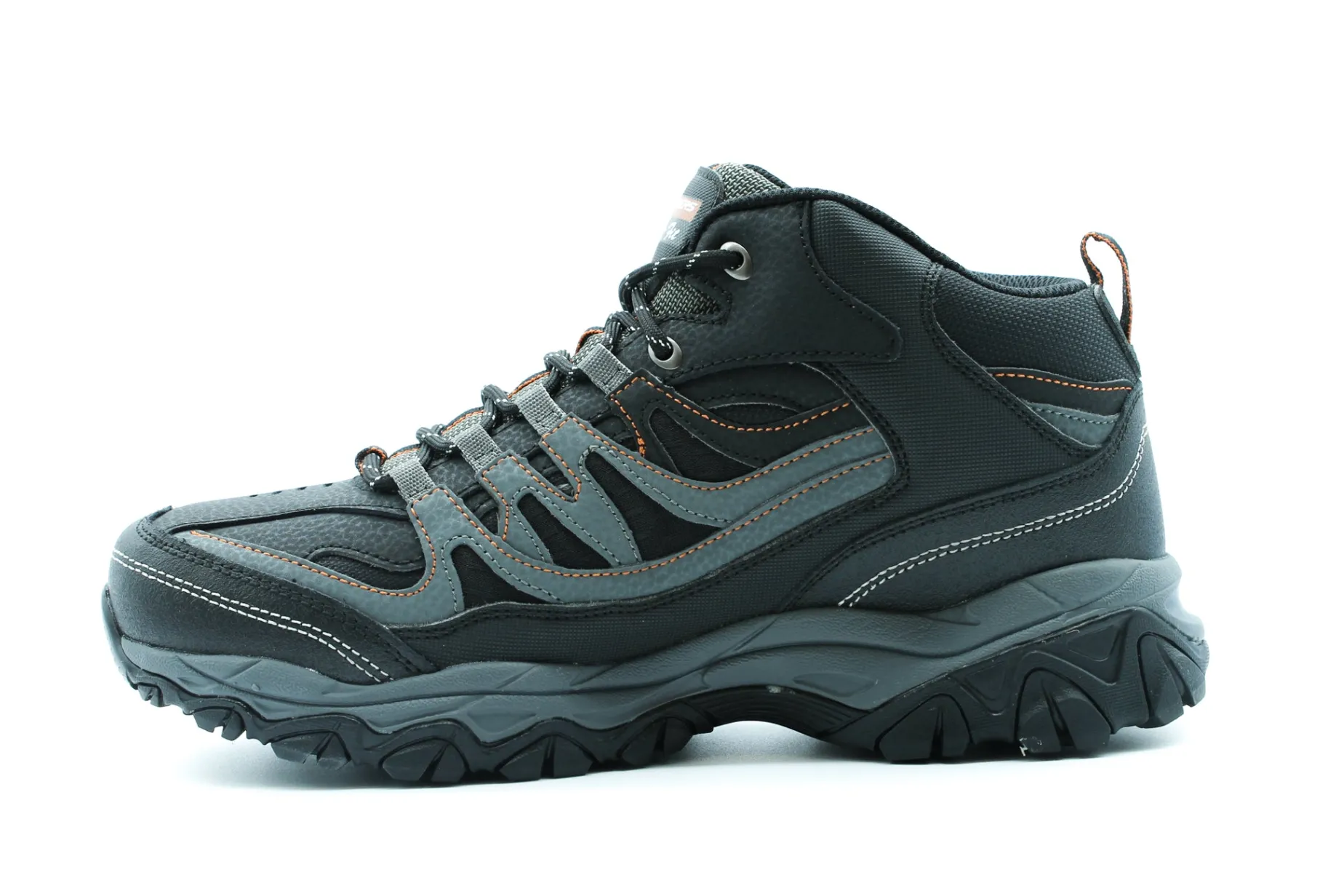 Classic style with up to date technology and comfort comes in the Skechers After Burn Memory Fit – Geardo shoe. This lace-up athletic high-top sneaker features a leather, synthetic and mesh upper with cushioned Air-Cooled Memory Foam® insole.