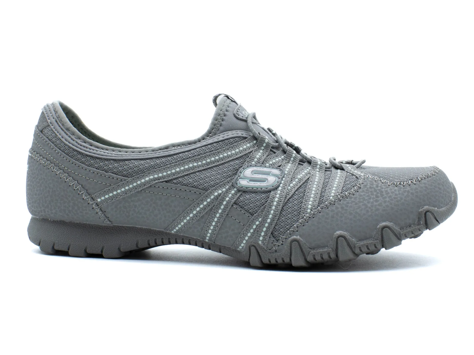 Add a little lite comfort to your look with the Bikers Lite grey sneaker by Skechers. Featuring a soft fabric upper with stretch laces and a cushioned Skechers Memory Foam comfort insole. These are super convenient, machine washable casual shoes perfect for walking! Smooth lining with a padded insole with bungee lace front for easy on and off.