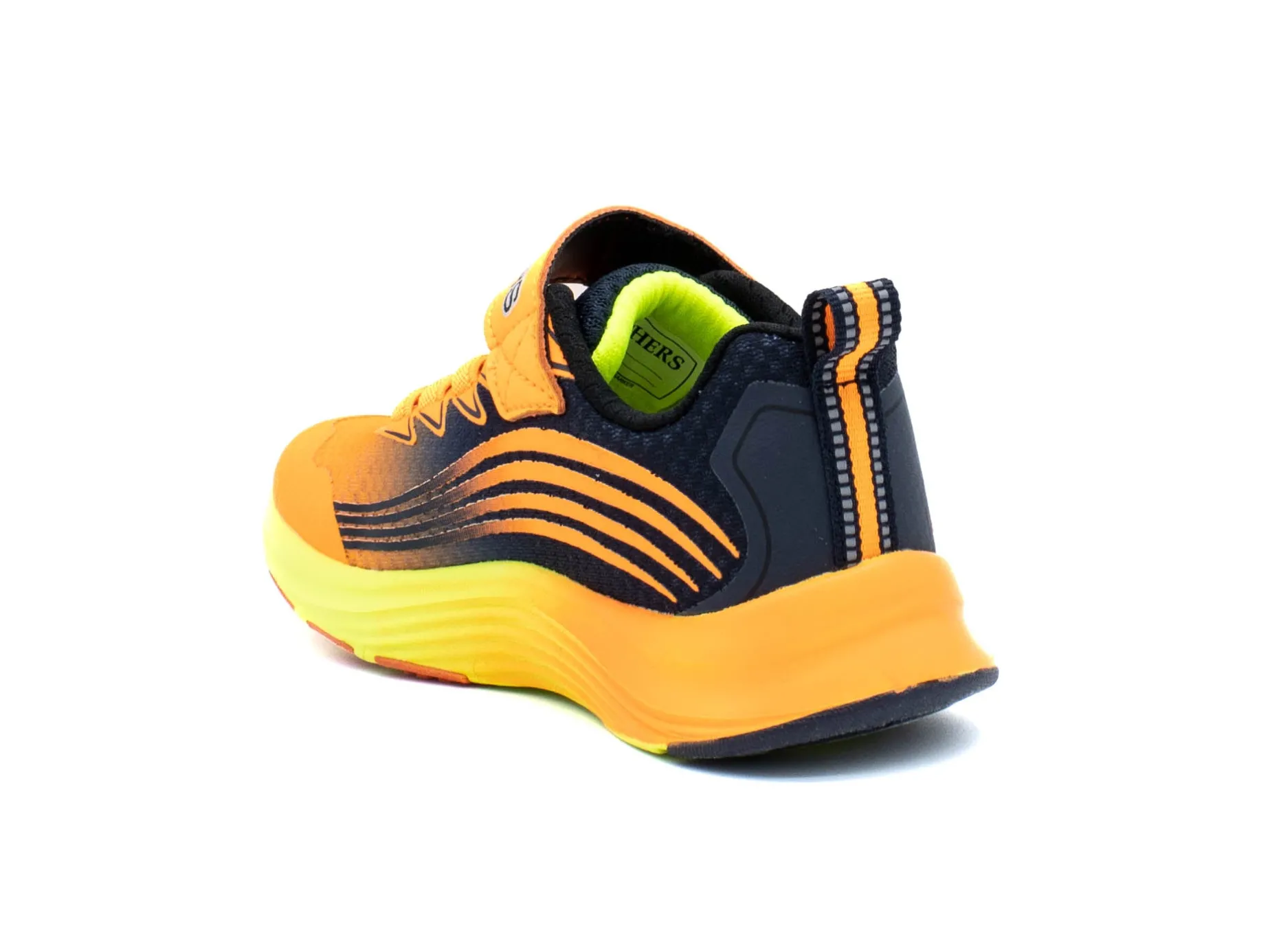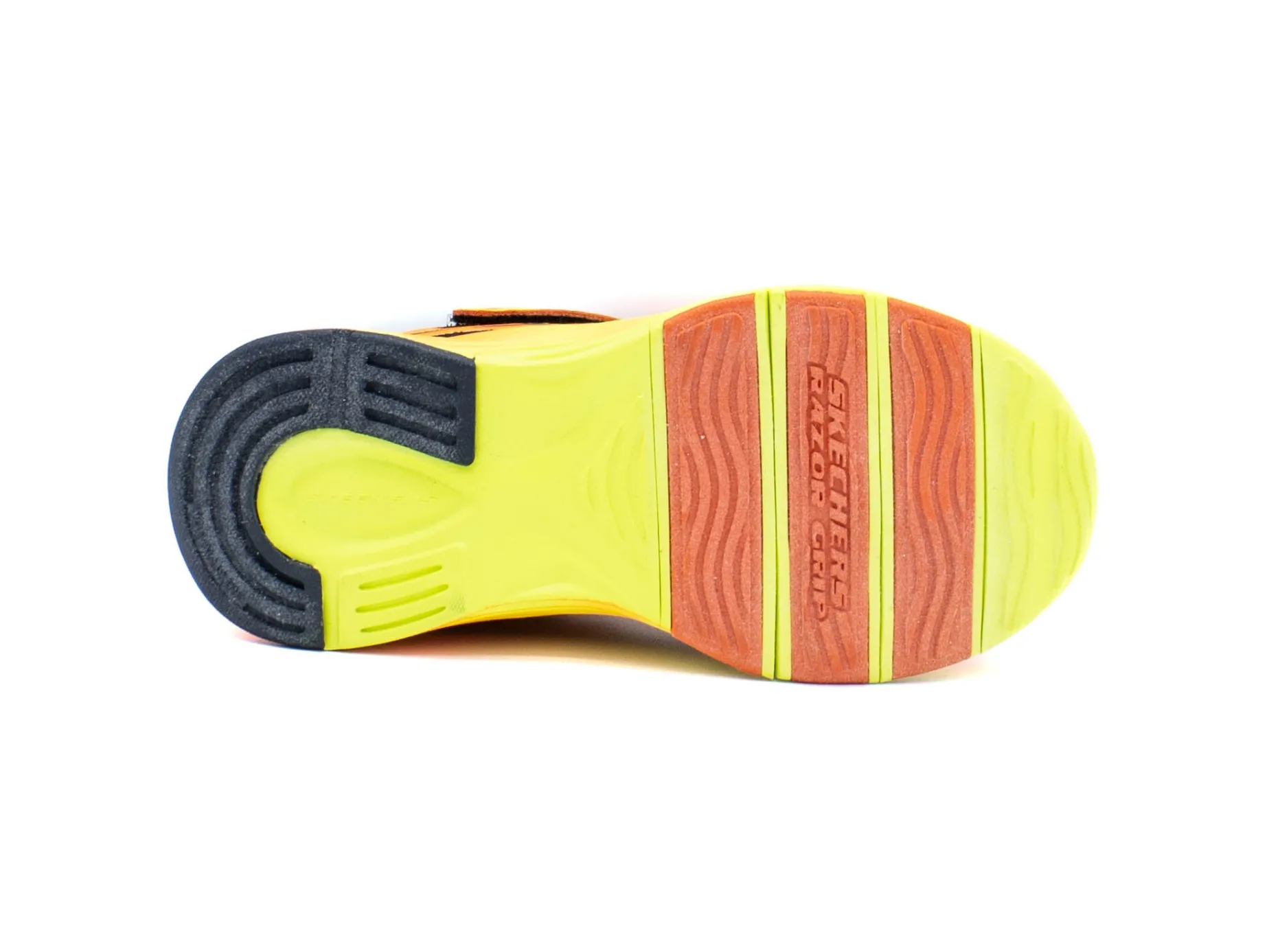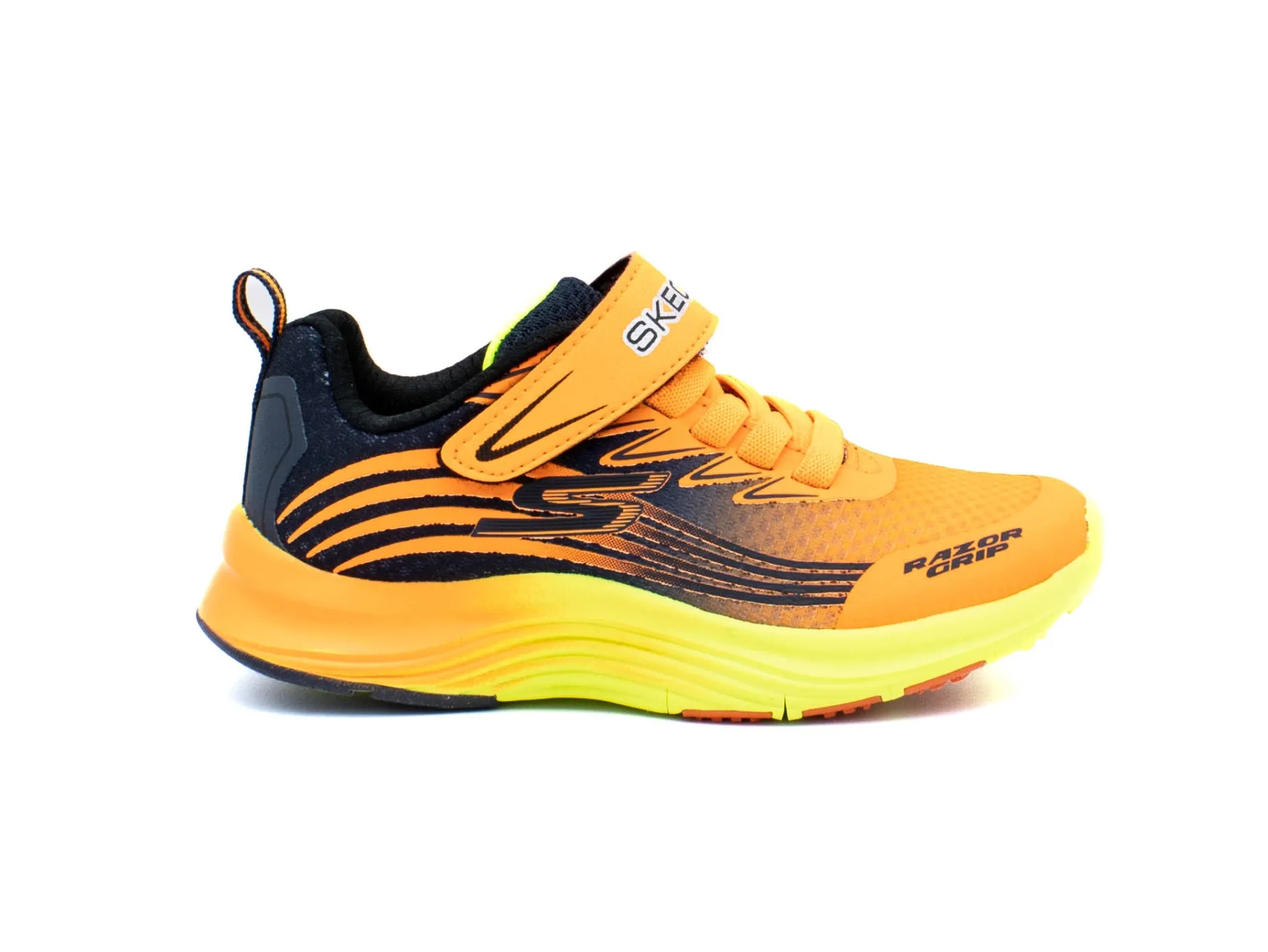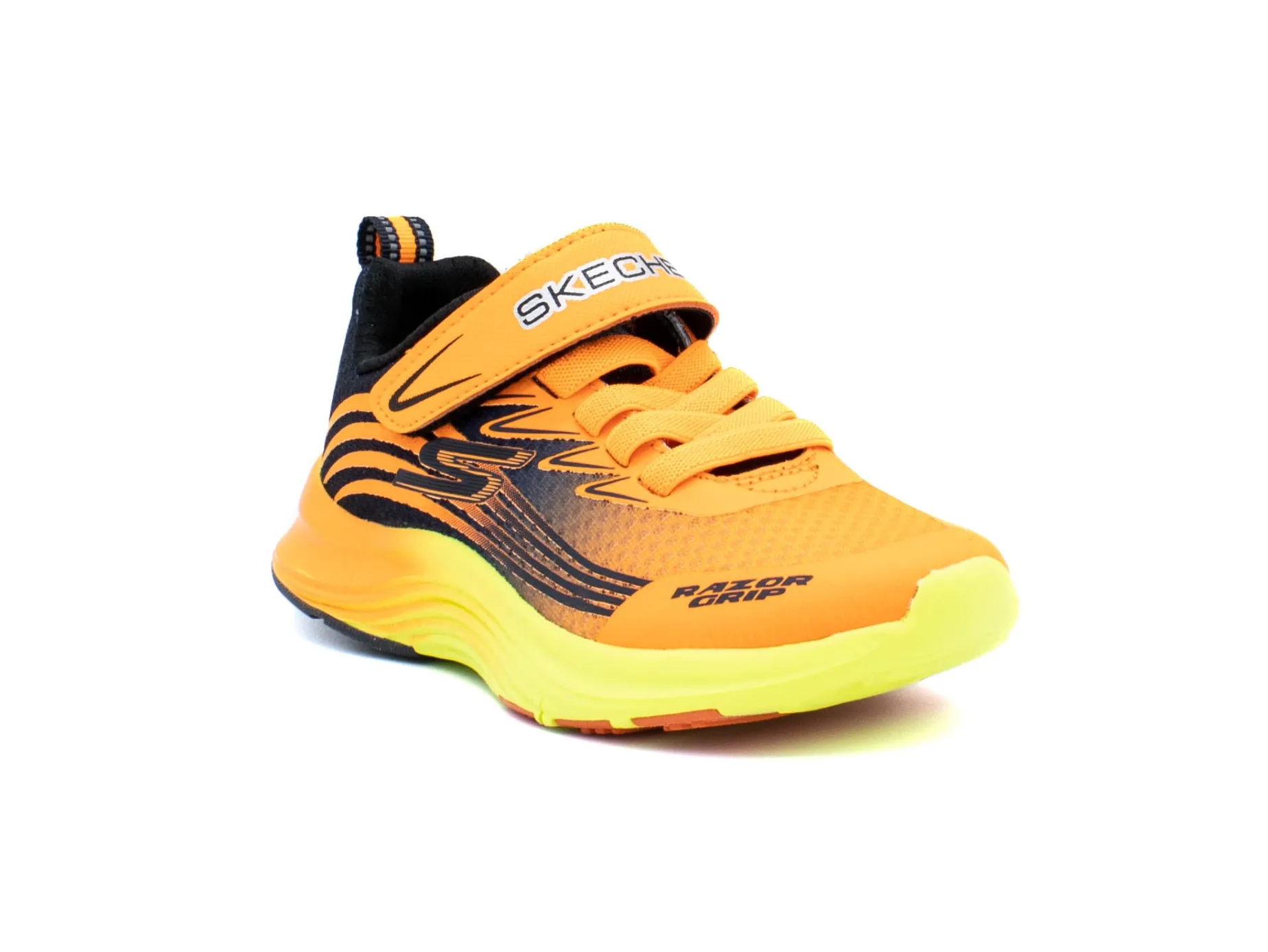 Textile and synthetic upper. SKECHERS Memory Foam cushioned comfort insole. Athletic style with SKECHERS razor grip. Synthetic and mesh upper with stretchable laces. Lace-up closure and hook-and-loop instep strap. Pull loops for easy wear and removal. Round toe. Signature brand name logo detail on the upper.