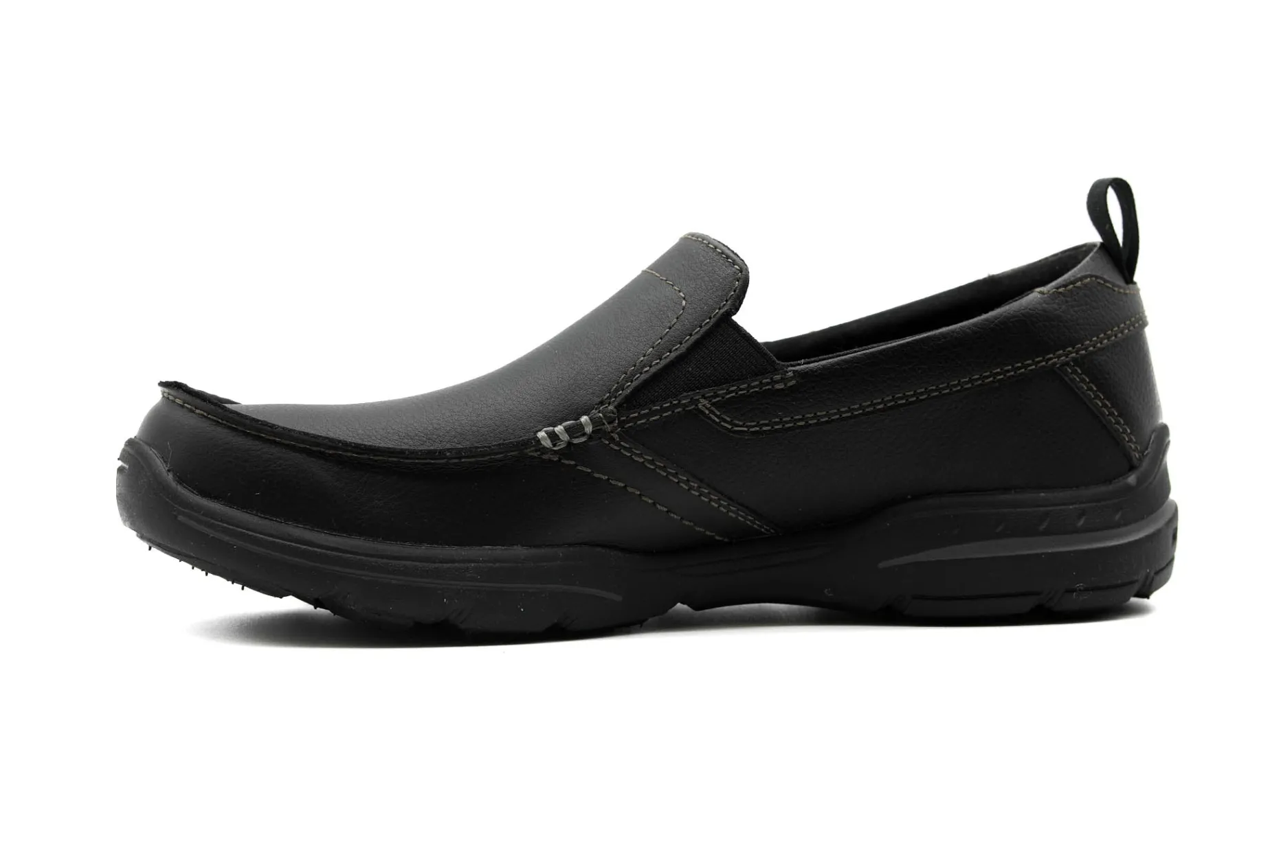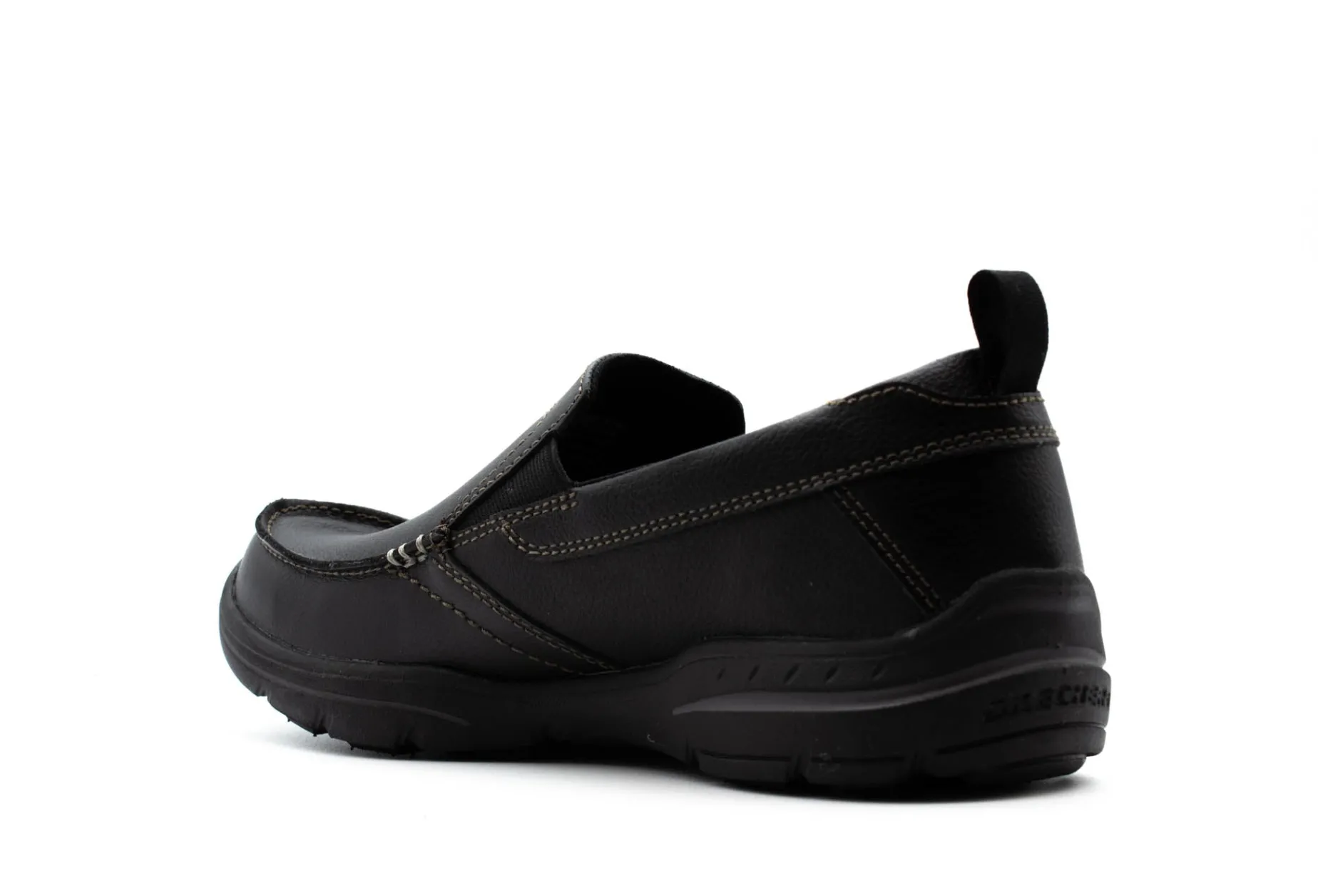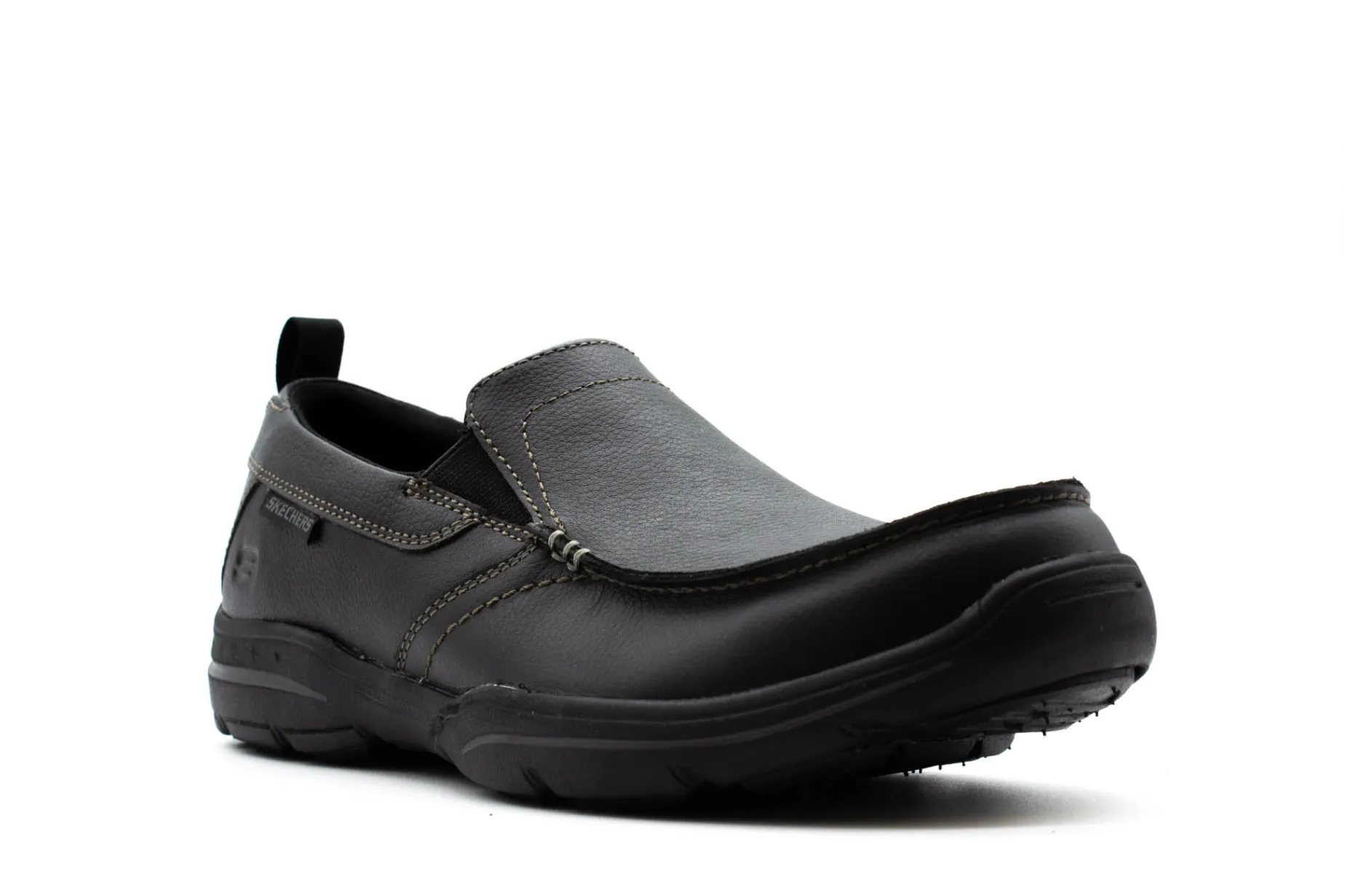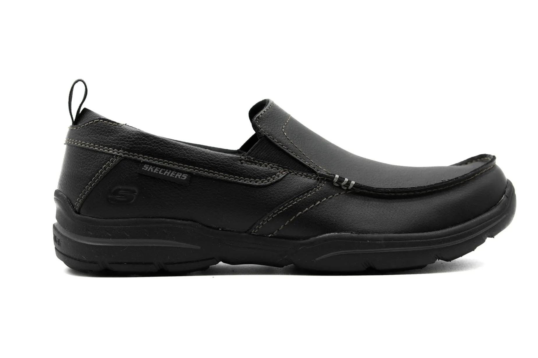 Turn loafing into a fine art form wearing the SKECHERS Relaxed Fit®: Harper – Forde shoe. Smooth full grain leather upper in a slip on casual comfort loafer with stitching and overlay accents. Air-Cooled Memory Foam insole.