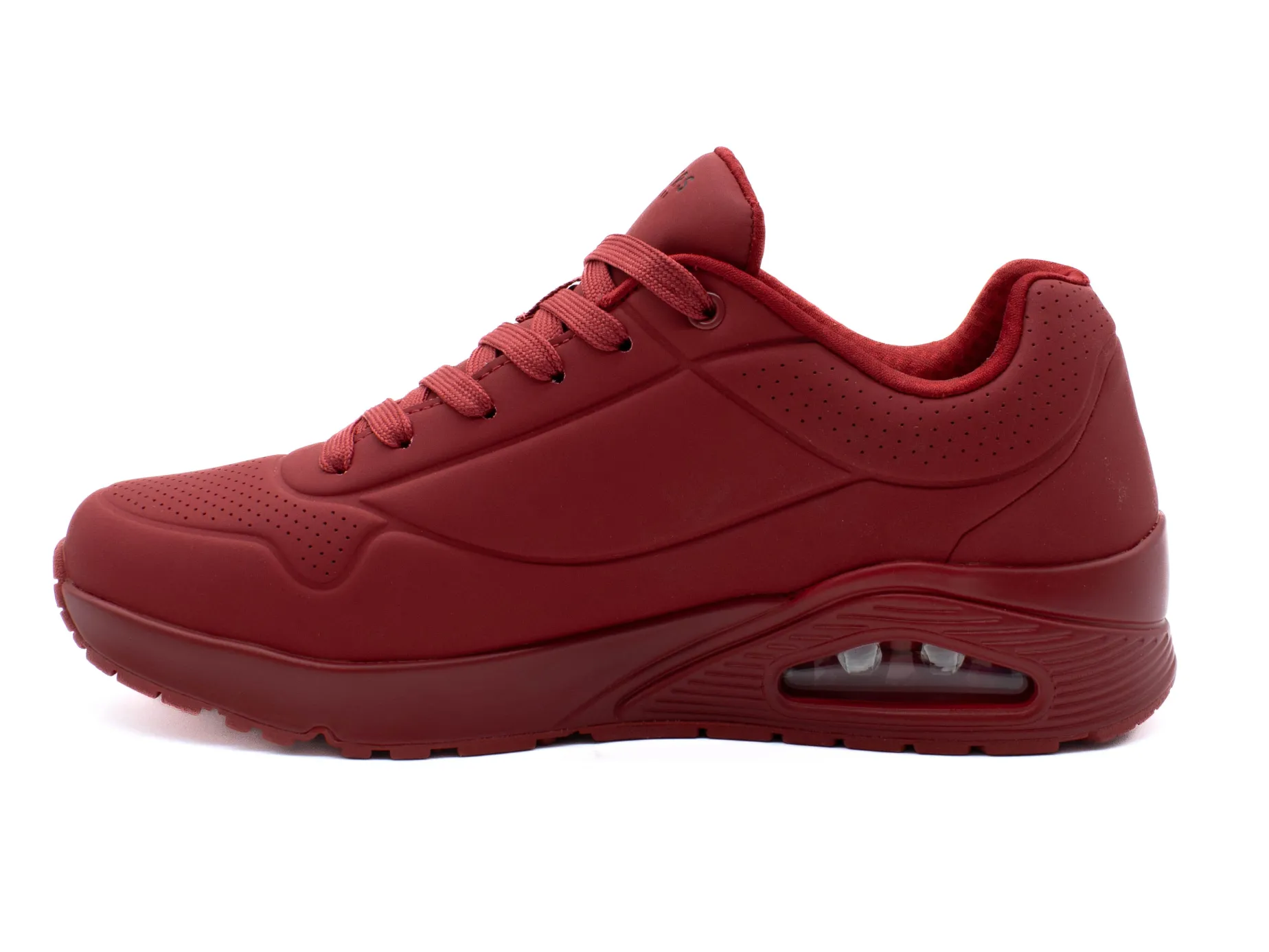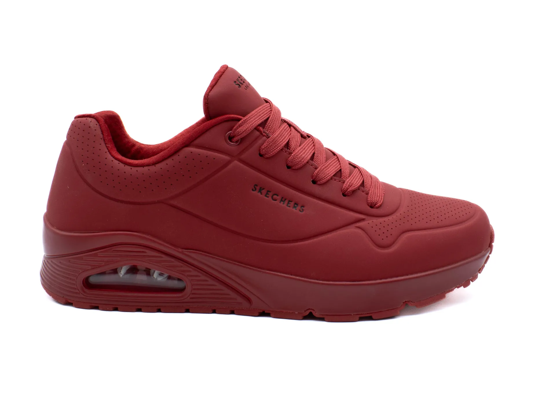 An iconic classic gets a fresh update in Skechers Street™ Street Uno – Stand on Air. This lace-up fashion sneaker features a smooth perforated synthetic upper with a Skechers Air-Cooled Memory Foam® insole and Skech-Air® visible airbag midsole.
