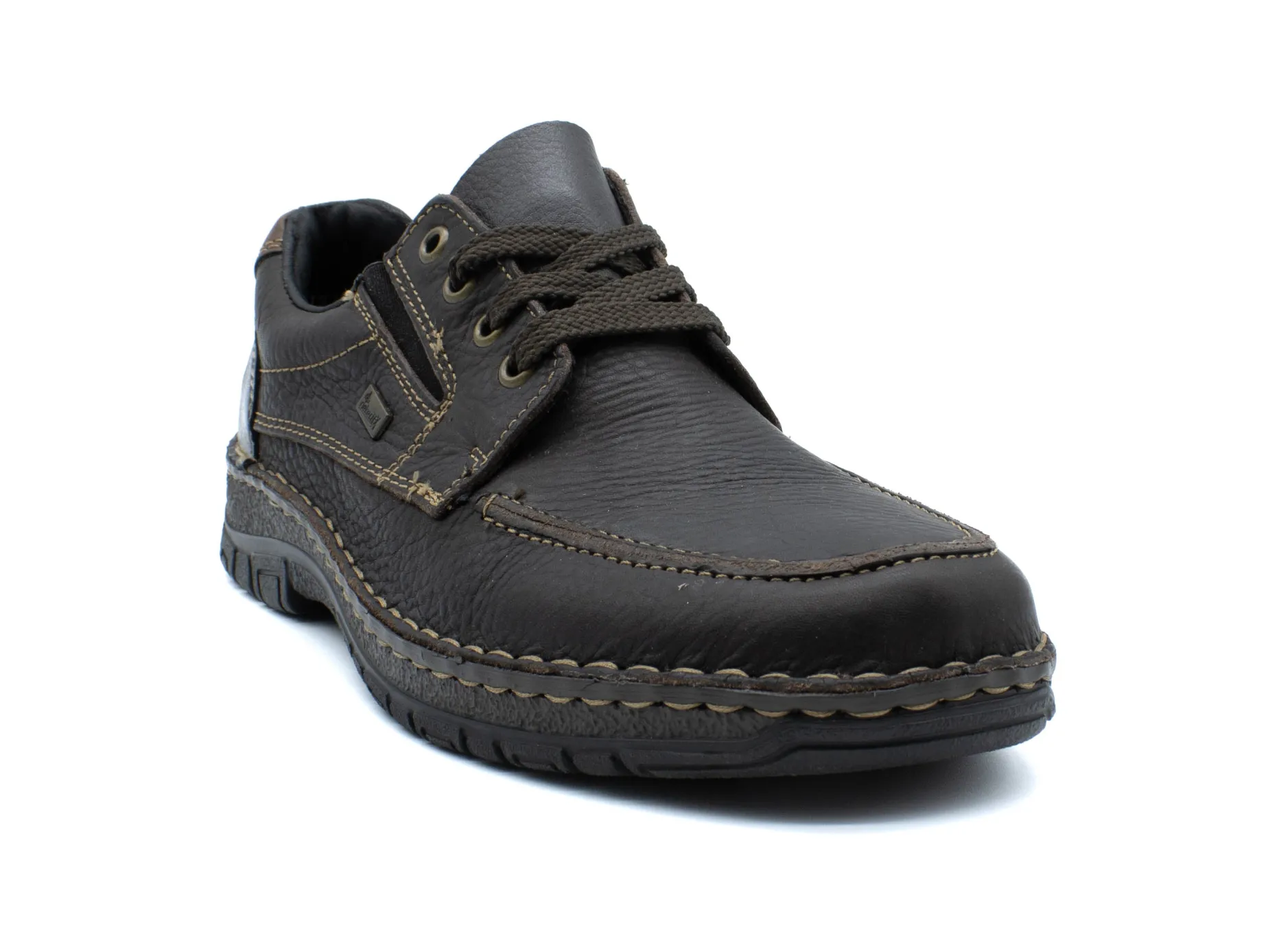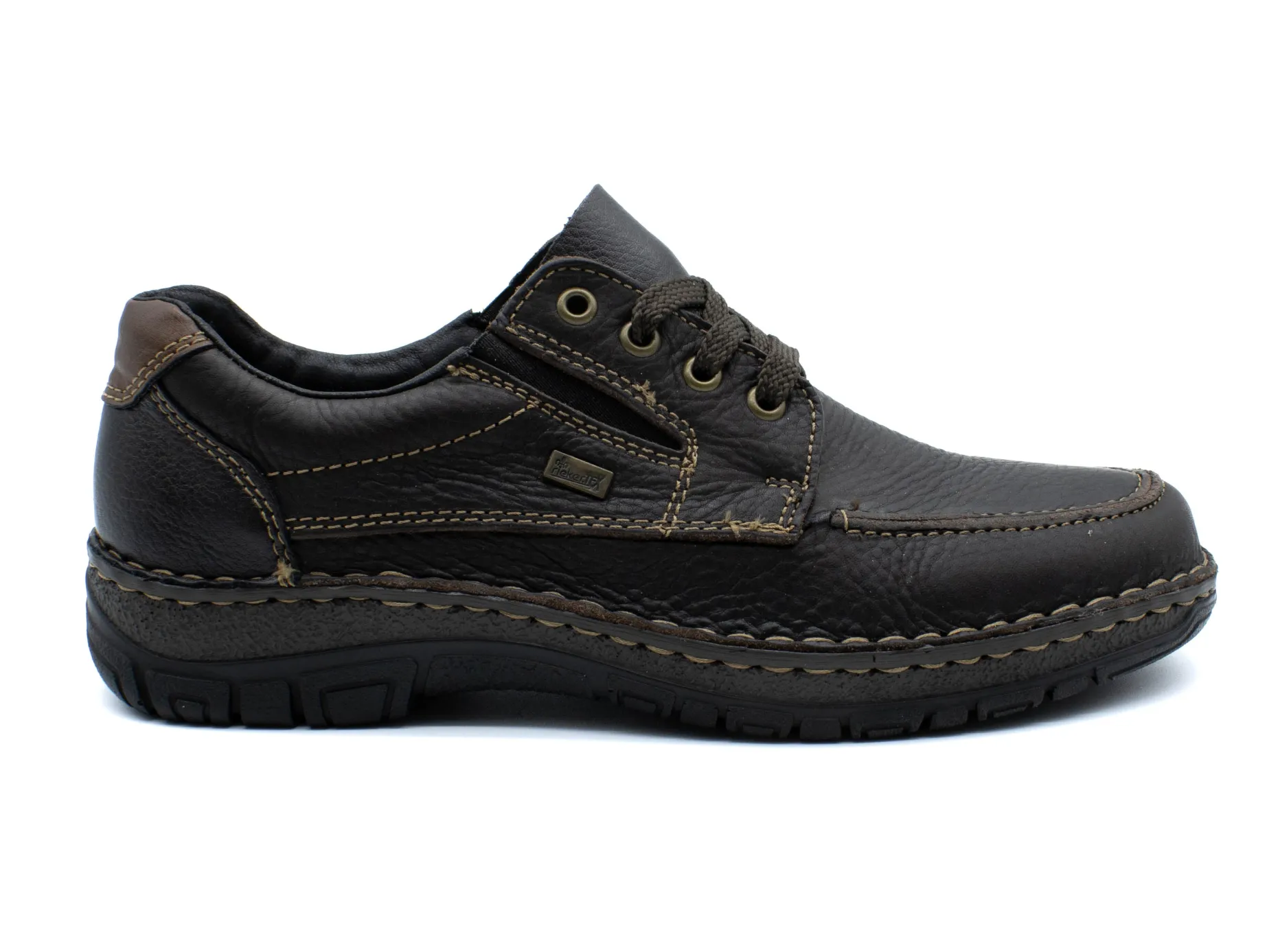 Leather upper Leather insole Water resistant Lace fastening Extra Width fit Extra Width fit Rieker 05100 Men’s lace up shoes designed to offer a stylish and versatile look, with a design focused on accommodating wider feet. Incorporating a water-resistant membrane, these shoes should keep your feet dry in damp conditions.